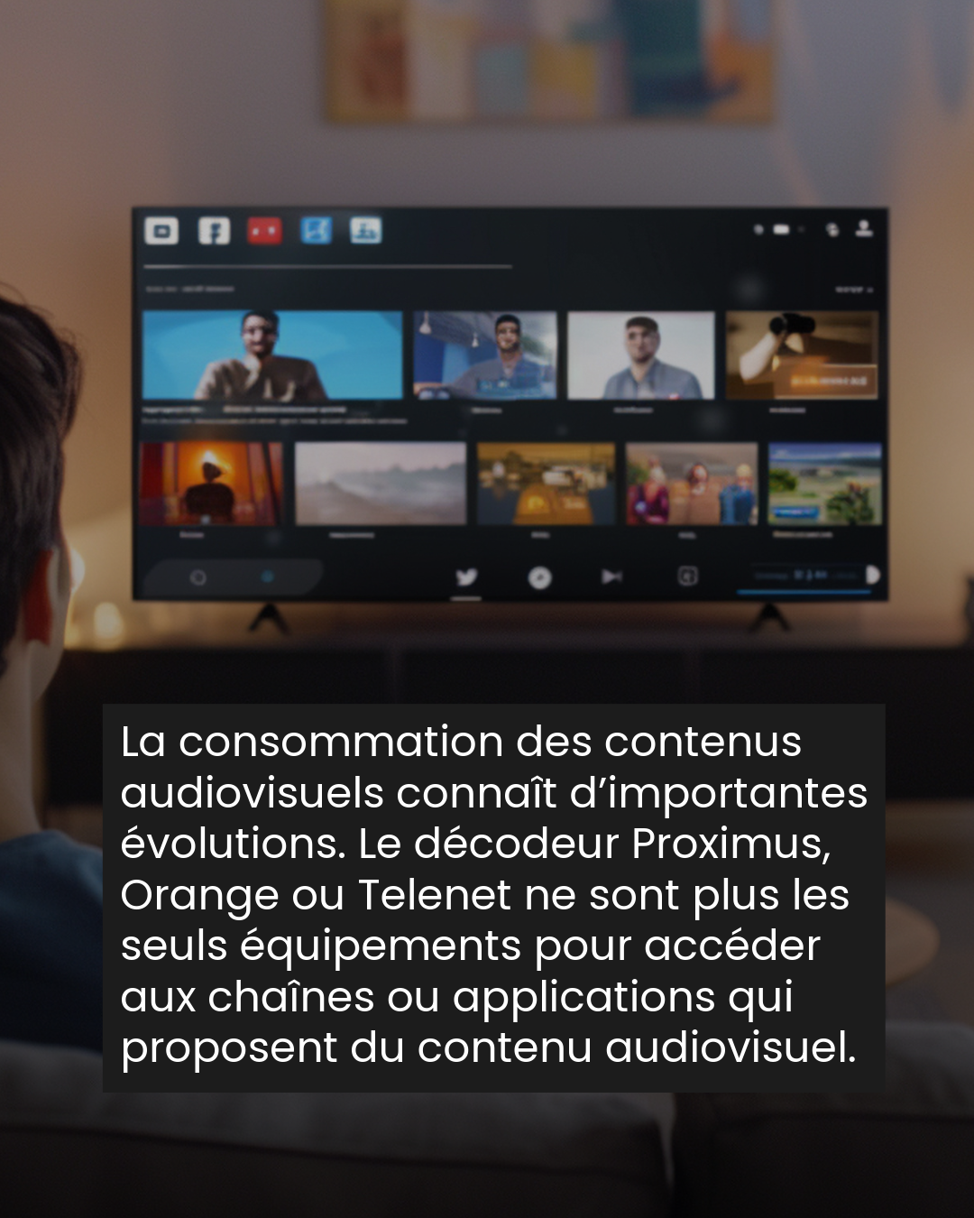 La consommation des contenus audiovisuels connaît d’importantes évolutions. Le décodeur des câblodistributeurs comme Proximus, Orange ou Telenet n’est plus le seul équipement pour accéder aux chaînes ou applications qui proposent du contenu audiovisuel. L’émergence des téléviseurs connectés (Samsung, LG, TCL), des enceintes intelligentes (Google, Amazon, Apple) et des appareils multimédias (Google TV, Apple TV, Fire TV), constitue une mutation structurelle du paysage de la distribution des services de médias audiovisuels ou sonores.