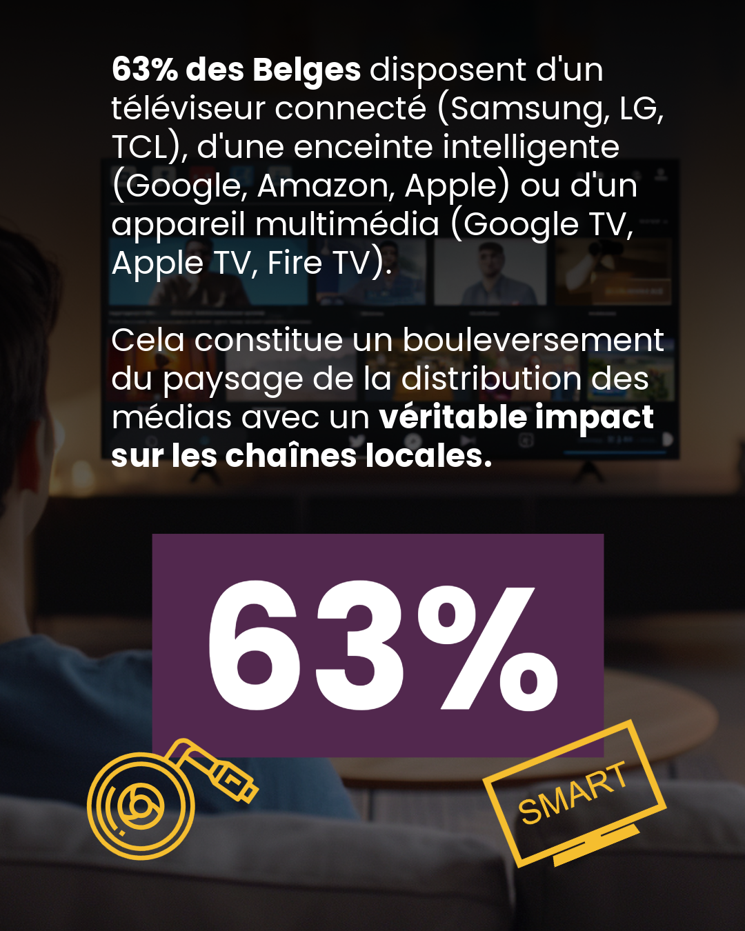 L’ampleur de ce basculement se mesure à l’aune du taux d’équipement des foyers. Selon l’Establishment Survey 2025 du CIM, environ 95% des ménages belges disposent d’un téléviseur, et 63% disposent de téléviseurs connectés.