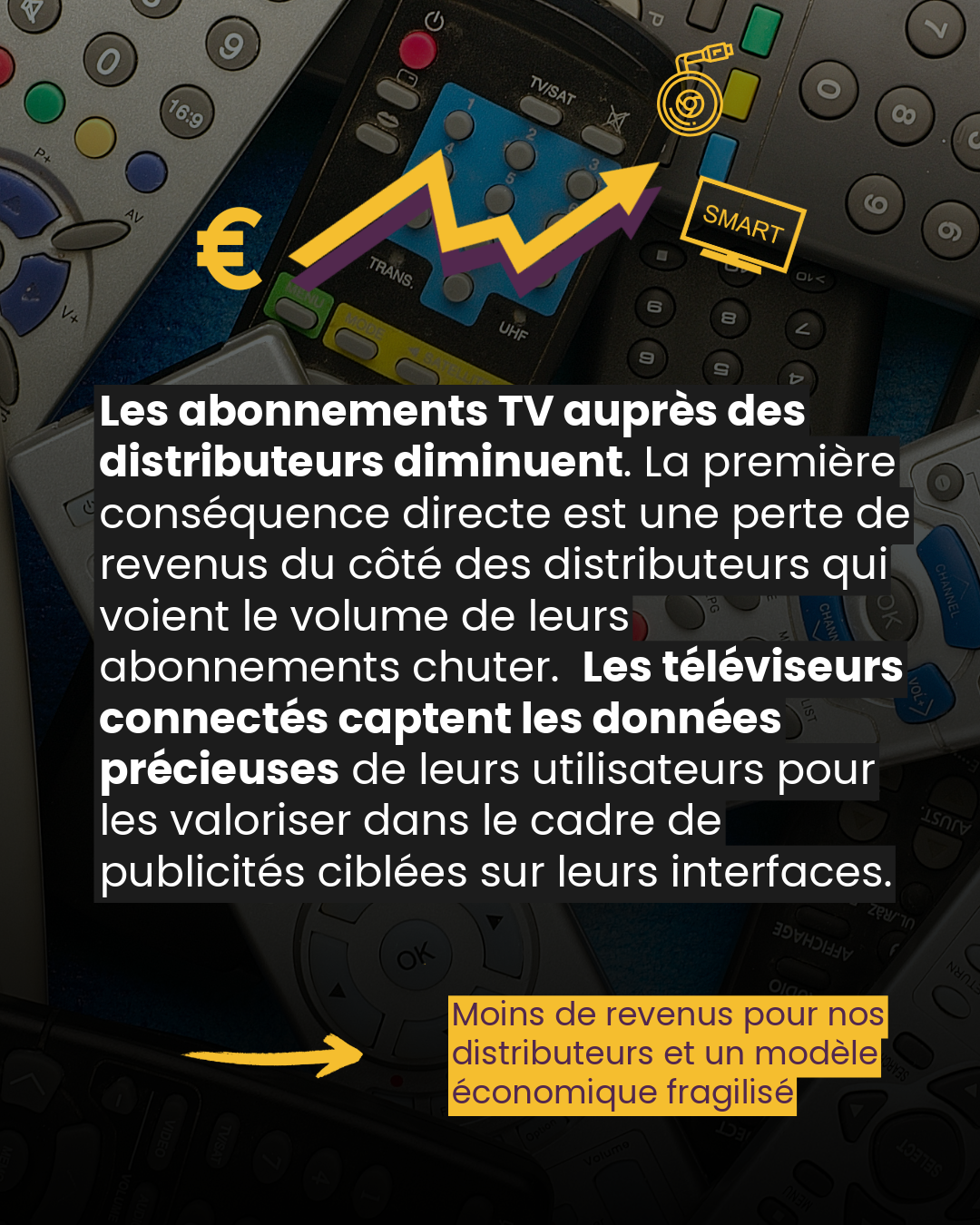 La première conséquence directe est une perte de revenus du côté des distributeurs qui voient le volume de leurs abonnements chuter.