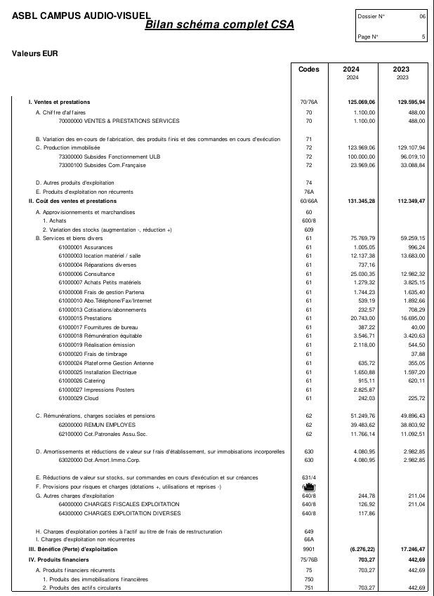 C.A de : Campus Audio-Visuel ASBL en (€)